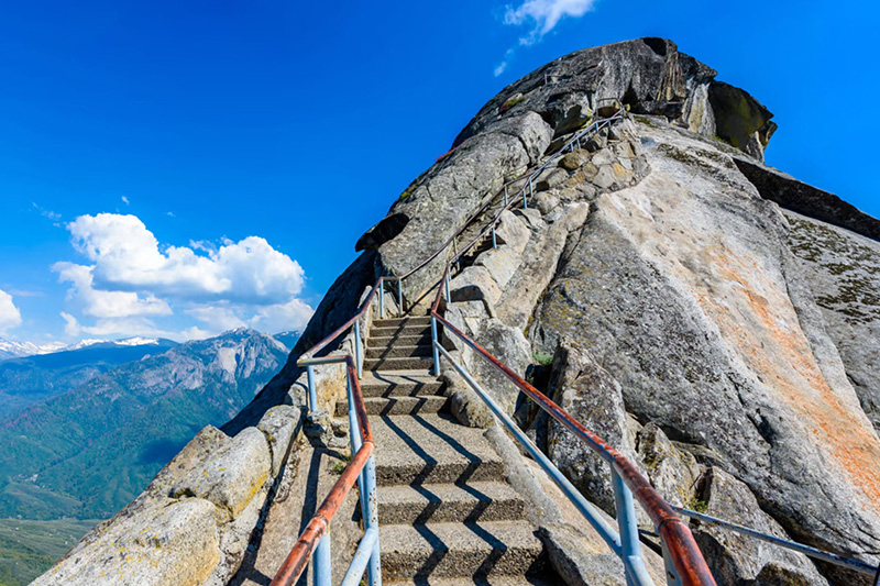 Moro Rock là một khối đá granite khổng lồ với cầu thang dẫn lên đỉnh, nơi du khách có thể chiêm ngưỡng toàn cảnh dãy núi Sierra Nevada và thung lũng. Đây là trải nghiệm tuyệt vời cho những ai thích phiêu lưu và muốn thử thách bản thân.